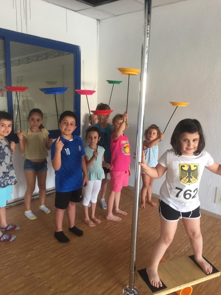 Durante esta semana haremos Telas aéreas, Aro aéreo, Trapecio, Acrobacias, Pole, Malabares, Zancos, Equilibrios… todo adaptado por edades, desde los 3 años, para que cada niño/a disfrute con total seguridad